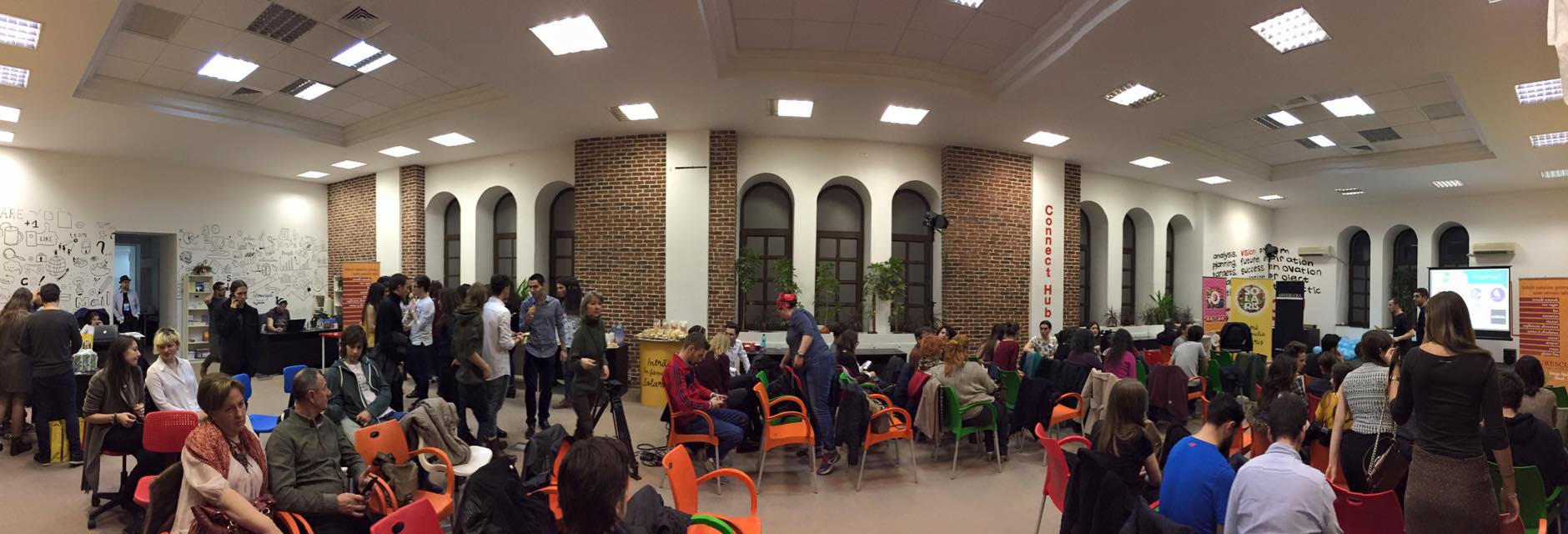 Connect Hub este un spatiu multifunctional aflat la etajul 3 al unei cladiri de pe bulevardul Dacia, nr. 99, in imediata apropiere de Piata Romana. Spatiul de care dispune Connect Hub are o suprafata de 550 mp si este impartit intr-o Sala principala (140 locuri), Sala de training (30 de locuri) si doua sali de intalniri (12 persoane).