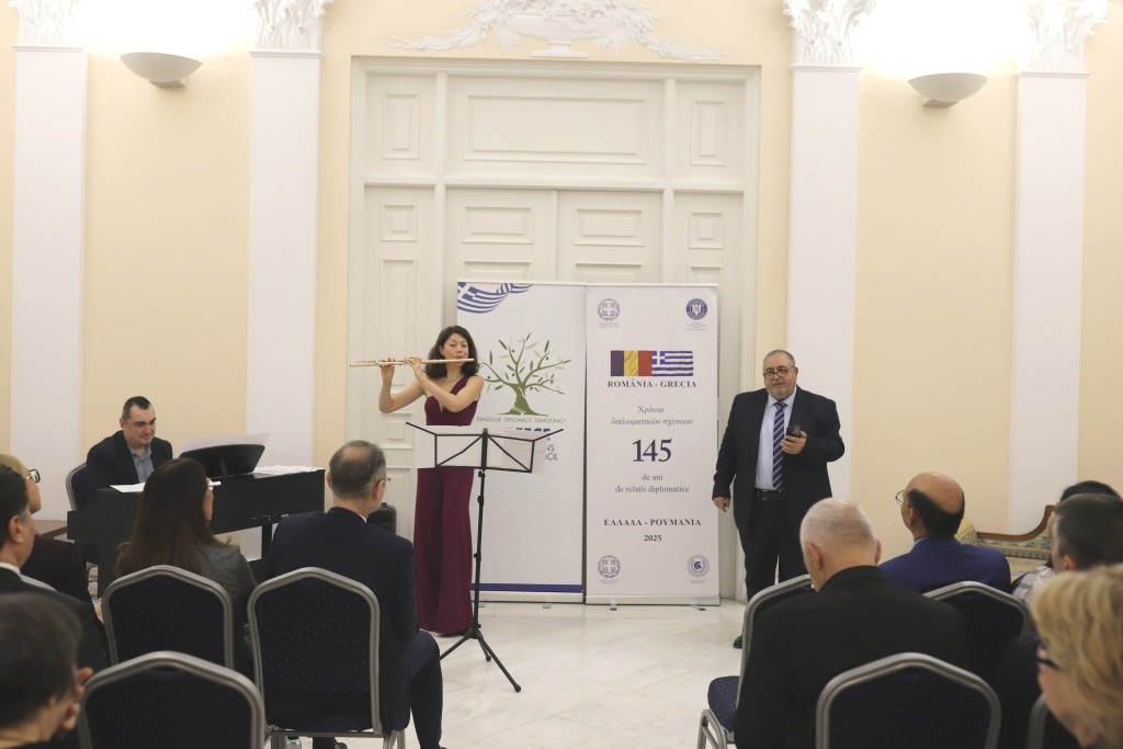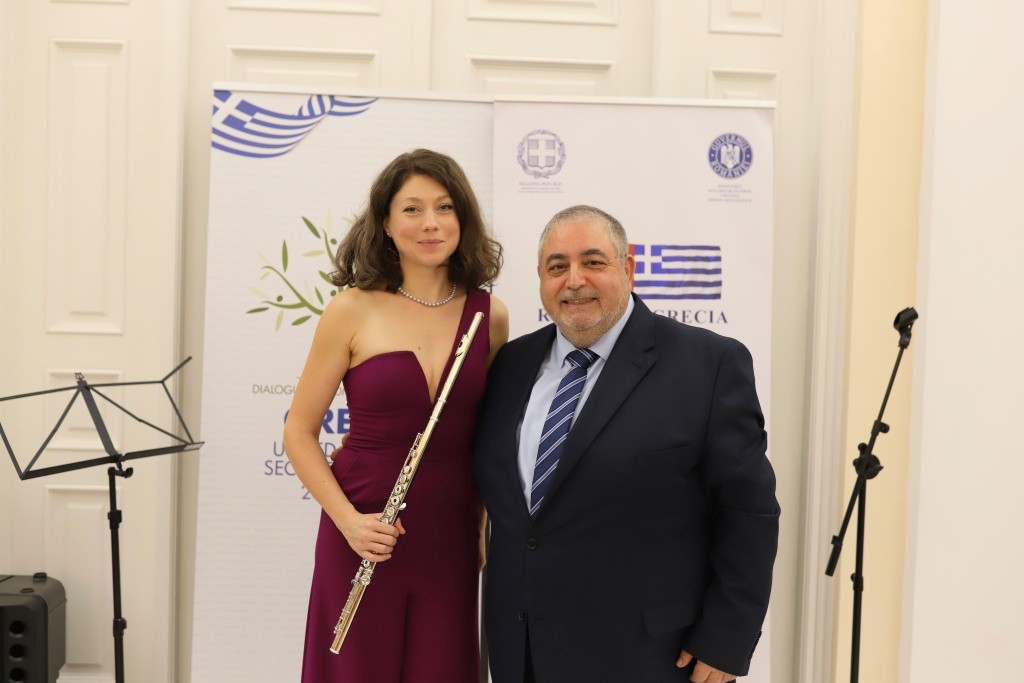HE Lili Evangelia Grammatika, Ambassador of Greece, the Ministry of Foreign Affairs and Societatea Muzicală organized the Welcome Concert in honor of HE Gloria Olivares, HE Manoj Kumar Mohapatra and HE Pericles Demetriou Stivaros, the newly arrived Ambassadors of Peru, India and Cyprus.